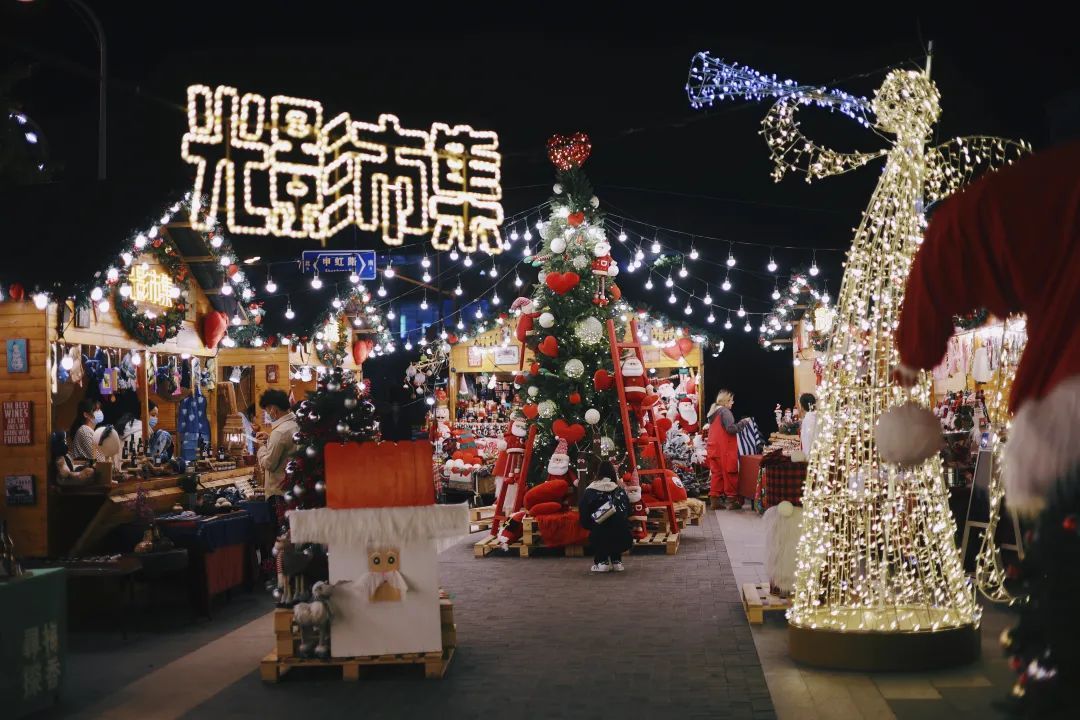 虹桥天地光影市集已经连续5个年头了,本次将持续至2023年1月8日。市集人气很旺,年龄不分老幼,尤其是周末,来逛的除了周边的居民,也少不了从远处开车来玩的一家人,还有拖着行李箱来出差的旅人。
