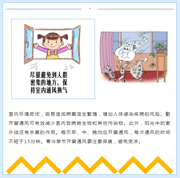 双休日尽量减少外出聚集或者不参加聚集性活动,特别是饭店用餐、景点旅游等。一旦出行,务必正确佩戴好口罩!居家勤洗手、勤通风,保持居室卫生干净!
