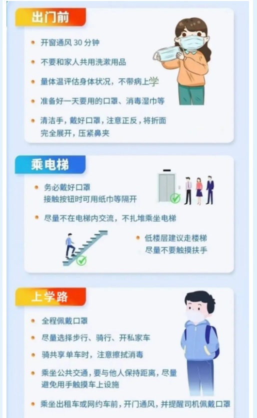 随着社会面出现感染病例的比例增大,个人被感染的几率也会大大增多。为最大可能降低个人感染的风险以及降低病毒传播的速度,学生与家长需要做好以下几点: