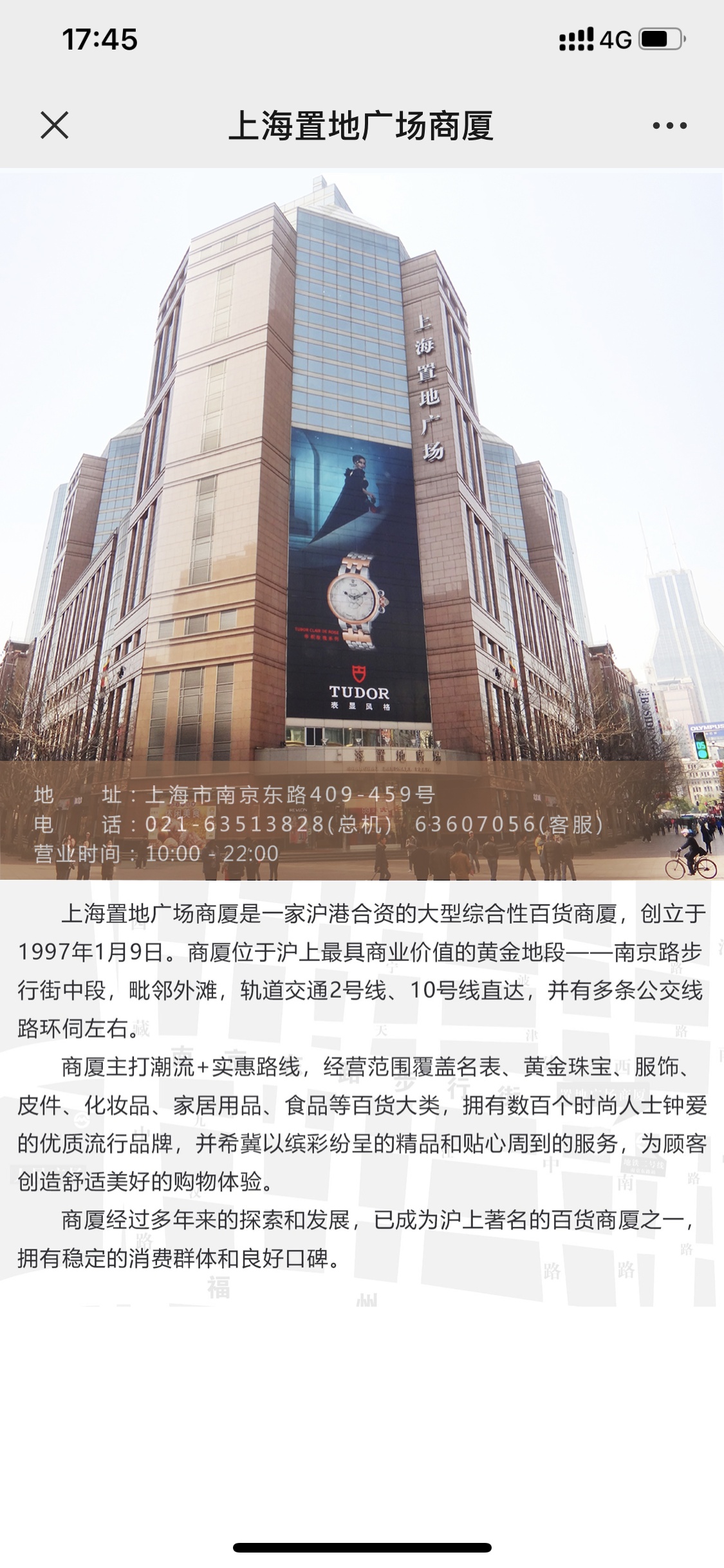 从1997年开业至今已经有26年的时间,是许多上海市民非常亲切与喜爱的商场,不同于南京路上其他大型商场的热闹欢腾,置地广场有些它独一份的魅力。地下2层是常年打折的折扣层,讲究实惠的市民经常回来这里淘货,都是一些连锁经营的品牌,质量有保证,价格又比别的地方便宜。还有诸如班尼路,真维斯等等的品牌,曾经在南京路上都开过大型旗舰店,后来关了门,但在这里还能寻到踪迹。