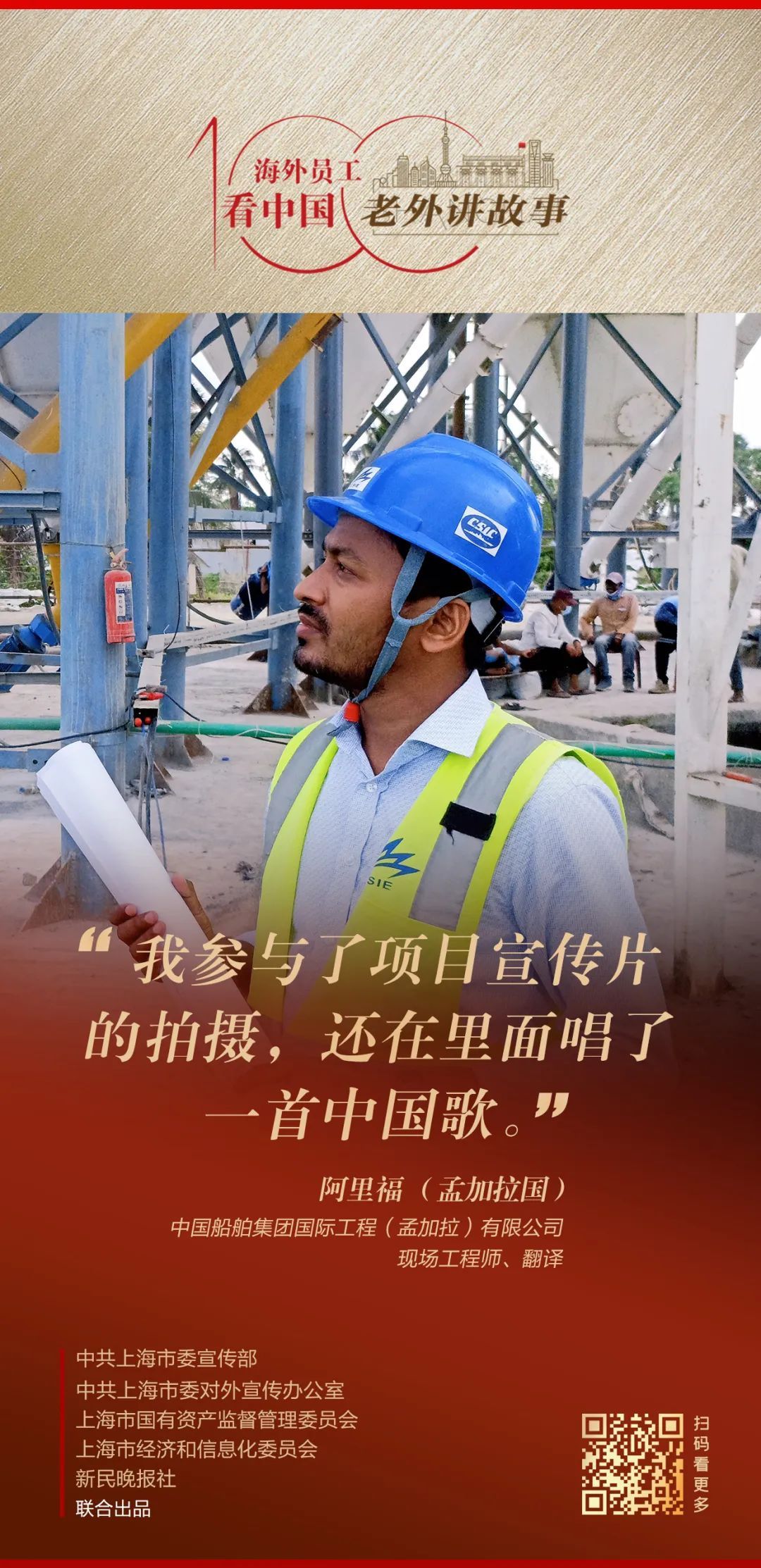 由中共上海市委宣传部、中共上海市委对外宣传办公室、上海市国有资产监督管理委员会、上海市经济和信息化委员会、新民晚报社联合出品的《老外讲故事•海外员工看中国》百集融媒体产品最新推出84-86期内容,中国船舶集团国际工程(孟加拉)有限公司现场工程师、翻译阿里福、上海港湾集团印尼子公司董事总经理黄正义、复星全球合伙人IDERA Capital董事长及CEO山田卓也讲述自己身处中国企业、观察中国的真实感受。