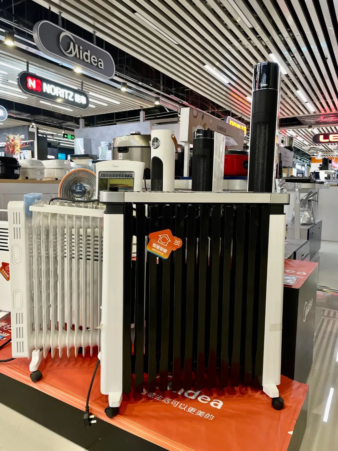 上午十点,小虹来到凯德虹口商业中心的国美电器,发现店家已把取暖设备摆到前排展示架上,各种取暖商品琳琅满目。据营销人员杨女士介绍,近一段时间,像踢脚线、电油汀、小太阳、暖风机等取暖设备卖得都很好,不少市民早早就来到商场选购。
