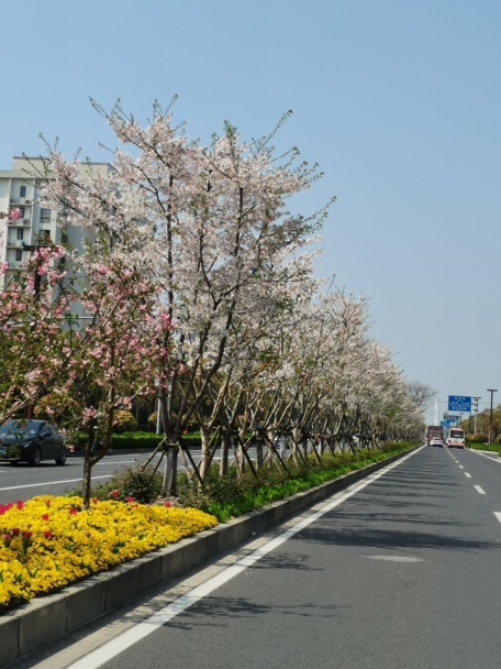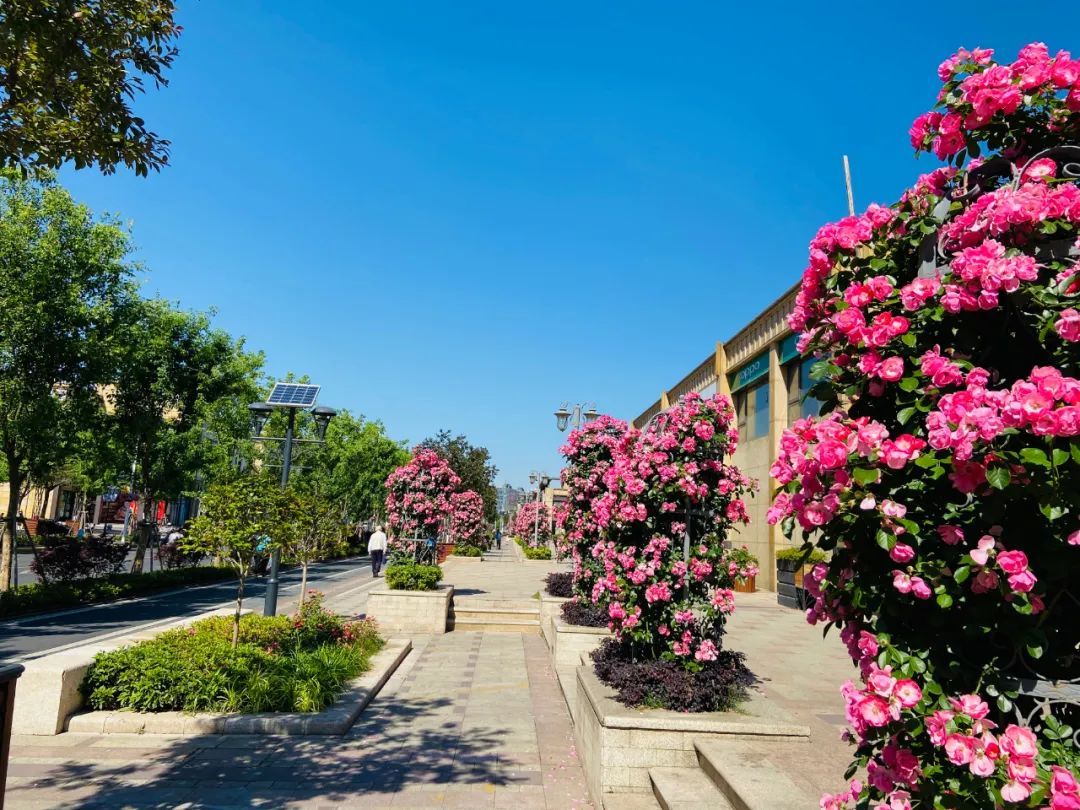 江月路(浦锦路-浦星公路)位于浦锦街道,为双向四车道,长650米,行道树为香樟,中分带种植樱花、中层紫薇,隔离护栏种植藤本月季,形成春夏季繁花似锦的特色景观道路,其最佳观赏期在3—9月。
