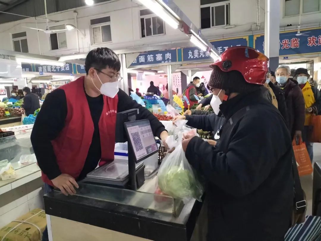 同时,菜市场也严抓卫生防疫工作,市场内多点配置消毒设备,每天中午封闭式进行消杀清洁,对于经营商户要求每日测量、登记体温、全程佩戴口罩,并加强夜间保安值班值守,查验人员健康码和进货单据,方可进入市场。