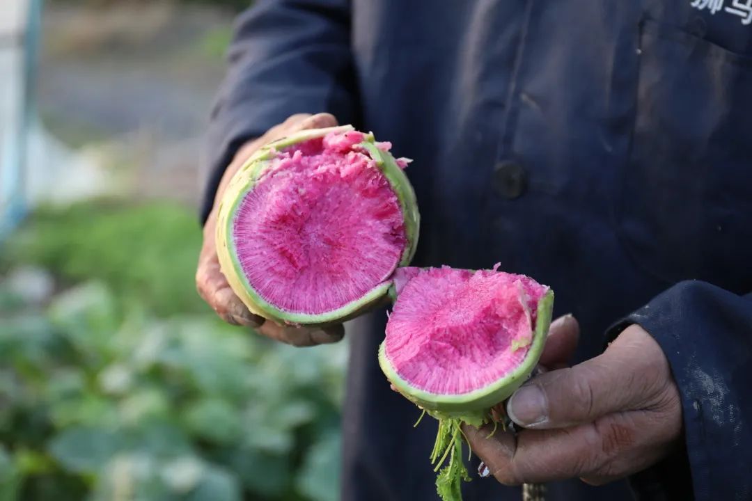 另外三个品种为青皮“翡翠”、红皮“红翠”和青皮红心的冰糖萝卜。这些品种都属于水果萝卜,口感清脆汁水多,适合凉拌或腌制。