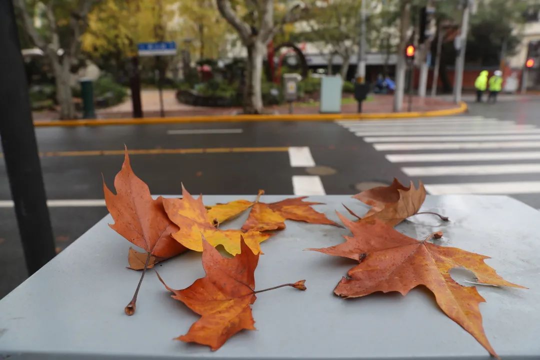 记者日前在位于徐汇衡复地区的衡山路上看到,伴随着毛毛细雨,梧桐树叶纷纷扬扬落了一地,此时此刻上海又迎来了最美落叶季。