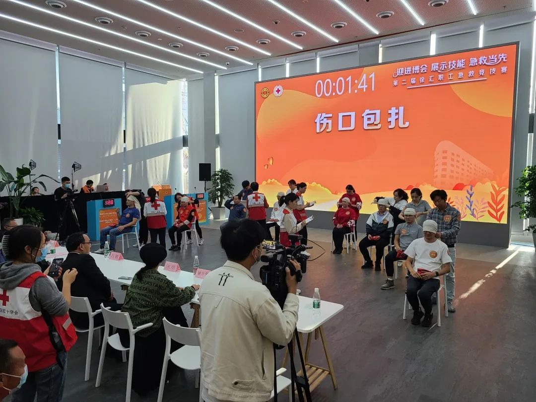 第五届中国国际进口博览会前夕、区总工会联合区红十字会在徐汇滨江党群中心举办“迎进博会 展示技能 急救当先”第二届徐汇职工急救竞技赛决赛。