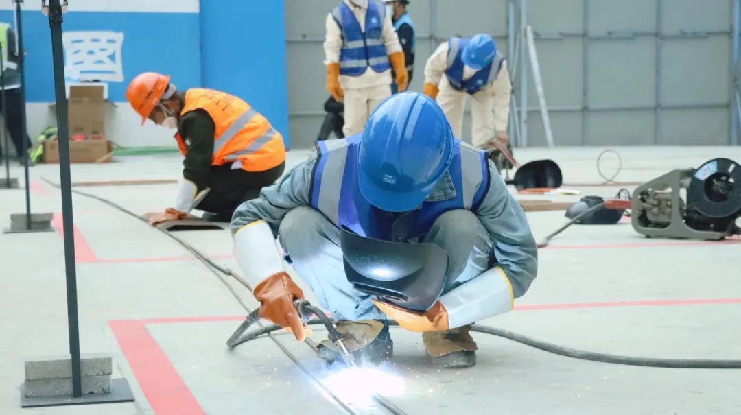 据悉,本次劳动技能竞赛由临港新片区重点工程实事立功竞赛活动领导小组办公室和南汇新城镇总工会联合主办,竞赛吸引了中建二局等国际创新协同区内主要施工单位的18支队伍、近百名建筑工人参加。竞赛内容分为理论考试和实际操作两部分,实际操作聚焦砌筑和电焊两大工种。来自建筑行业的九位专家组成评审团,从入场规范、工艺操作、完成效果、成果观感、安全文明施工等方面进行综合评比。