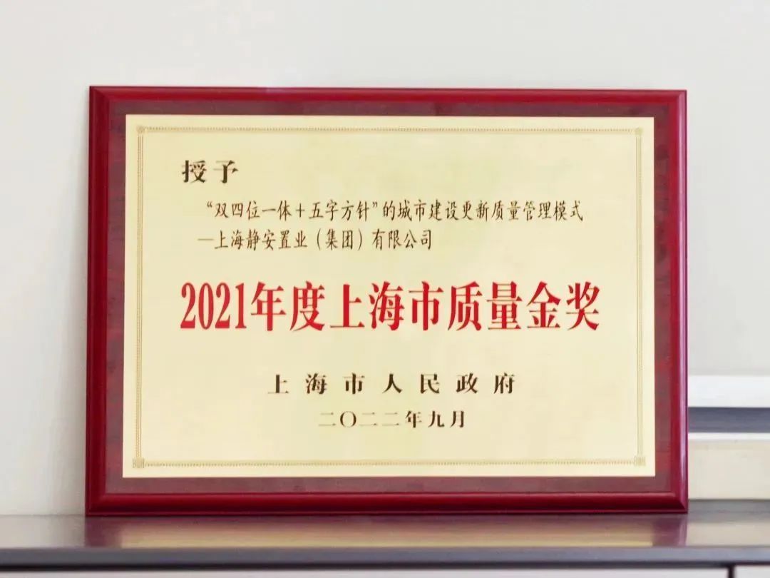 2022年12月9日,2021年度上海市质量金奖颁奖仪式在上海城市规划馆5楼发布厅隆重举行。上海静安置业(集团)有限公司以“‘双四位一体+五字方针’城市建设更新质量管理模式”获得这一重量级荣誉,上海市委常委、副市长张为现场为静安置业集团董事长时筠仑颁发了奖项。