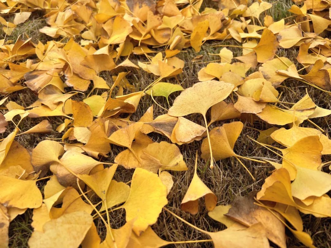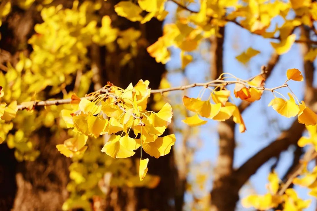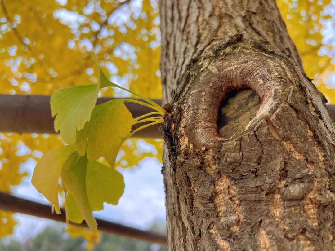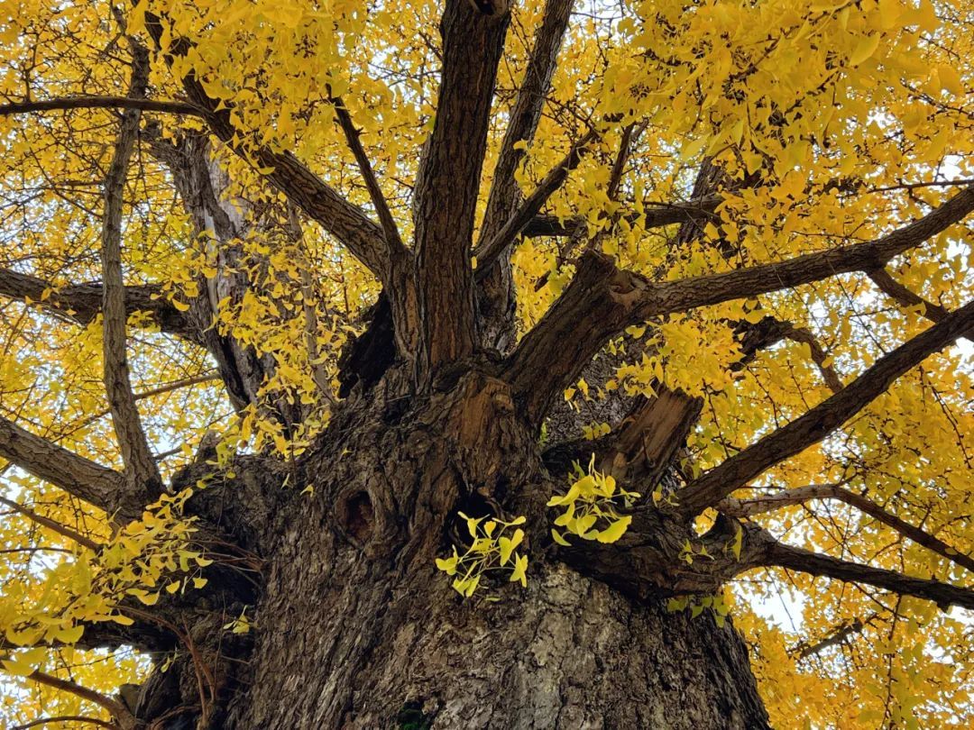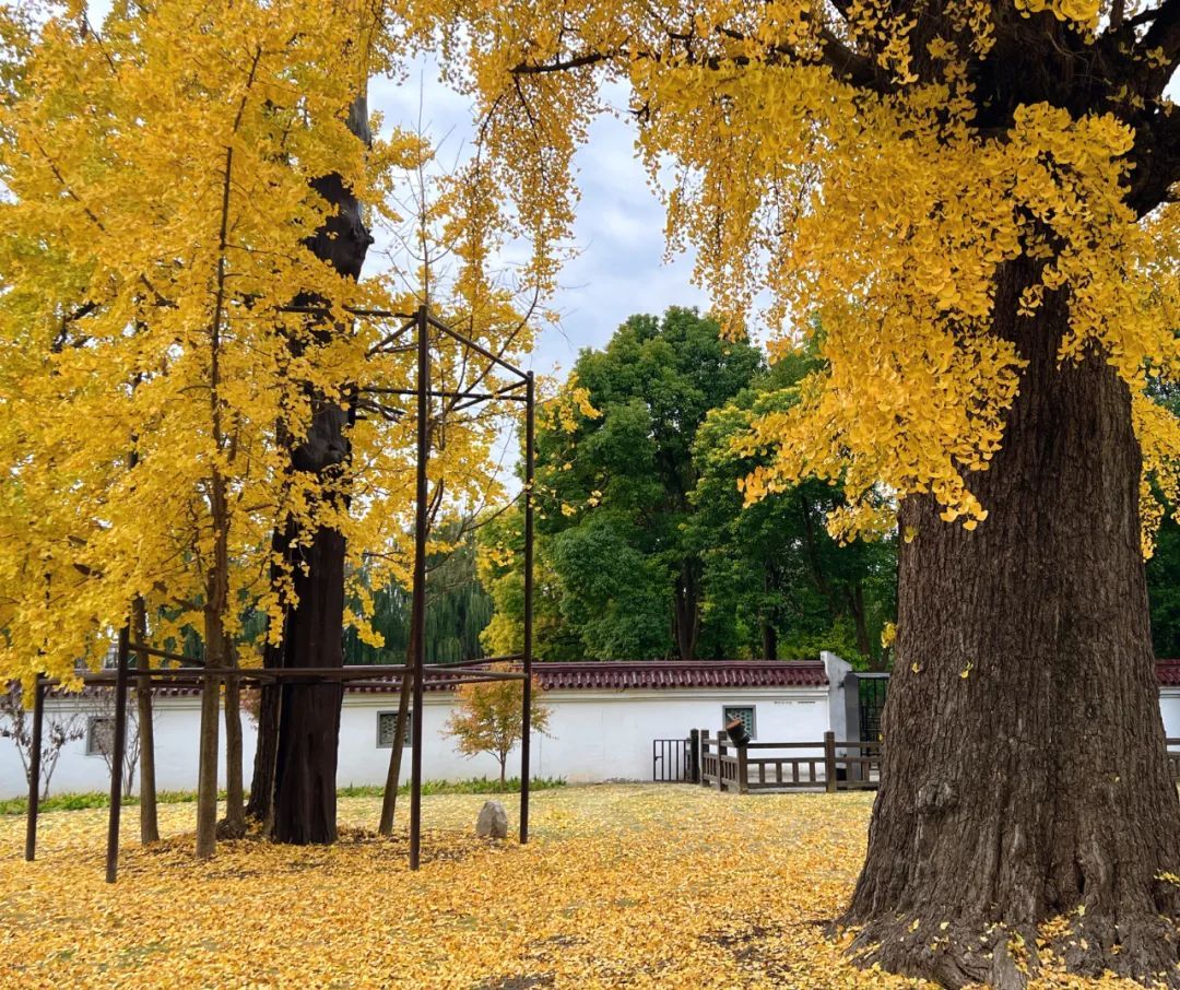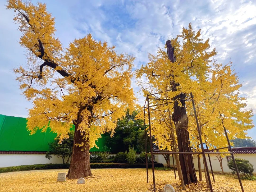 矗立在庙堂遗址的两棵古银杏树相挨在一起
