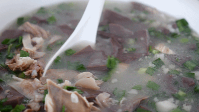 厨师舀汤,加香葱、香菜,一碗下肚,寒冷立马烟消云散,每个毛孔都透着温暖舒适。