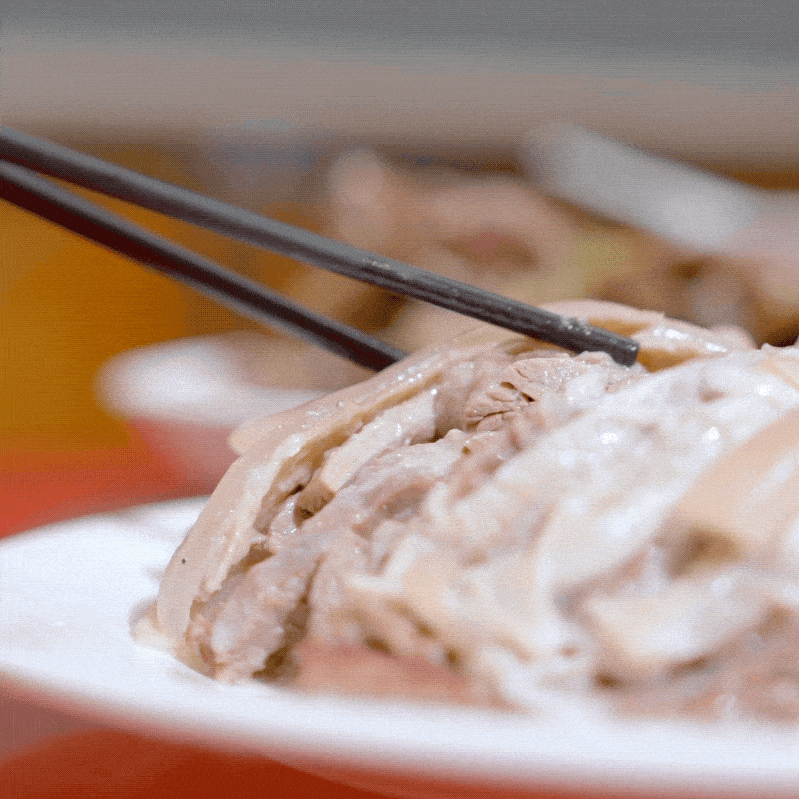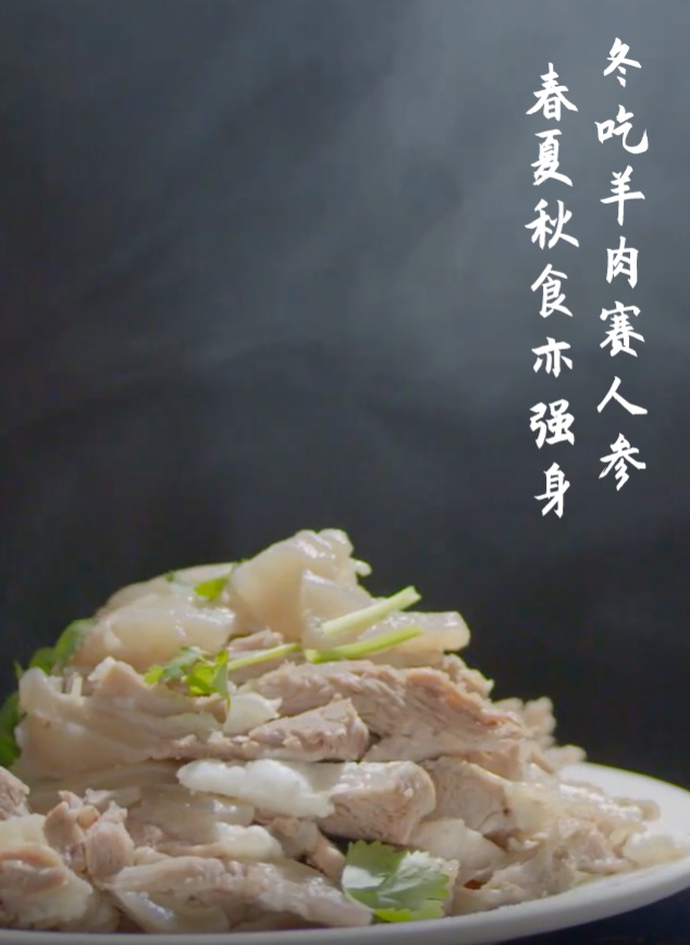 在灯光的映照下,白切羊肉晶莹剔透、细腻白润。