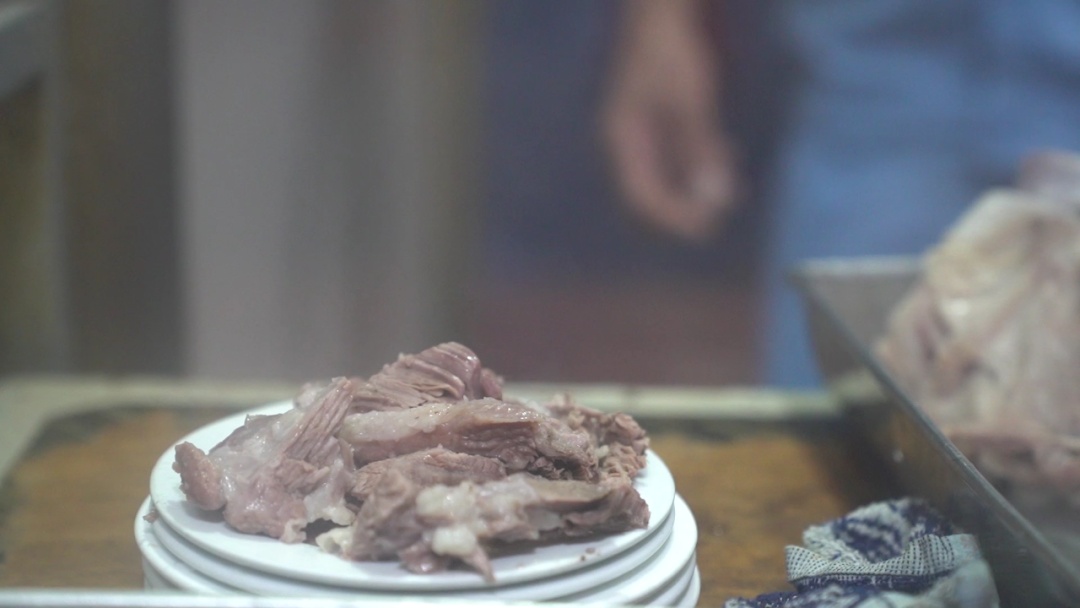 大锅里的羊骨汤滚沸,肉和骨头在锅里咕嘟嘟翻腾着。