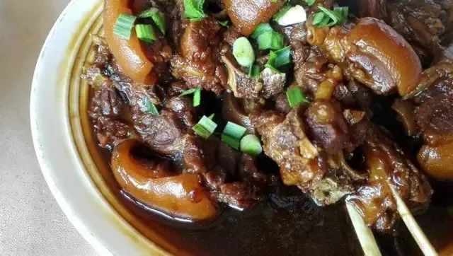 夹起一筷羊肉,沾上酱油,放进嘴里轻轻一抿,只觉羊肉酥香软糯、入口即化。