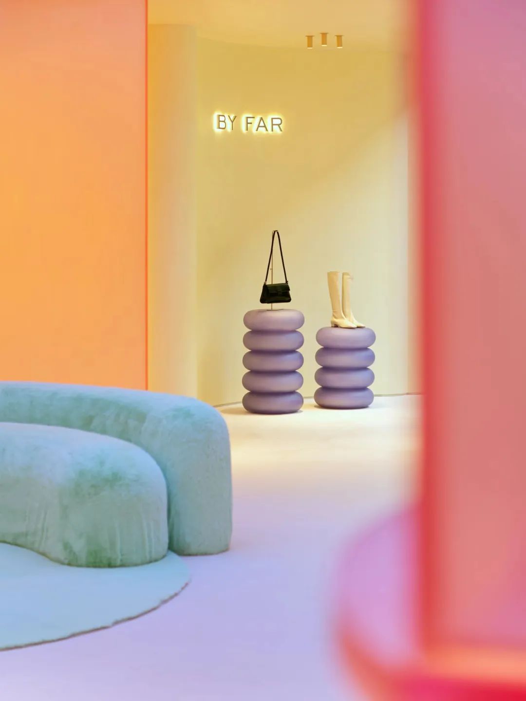 或在玫瑰色的女性专属的“BY FAR 化妆间”内,享受只属于自己的减压一刻,精神焕发;又或是与三两闺蜜好友相约在BY FAR的丁香紫梦境般的VIP沙龙内,享受私密和欢快的畅聊。