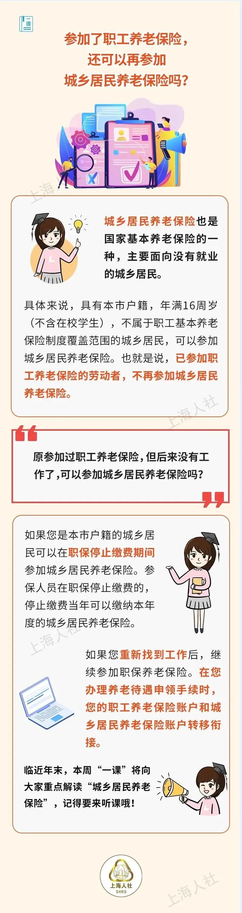 小罗在本市一家零售企业工作,参加的是城镇职工养老保险。最近他在某自媒体账号上看到,还有一种城乡居民养老保险制度,可以自己缴费参加,觉得这倒是可以为自己以后多增加点退休金。像小罗这种已经参加城镇职工养老保险的,还可以再参加城乡居民养老保险吗?