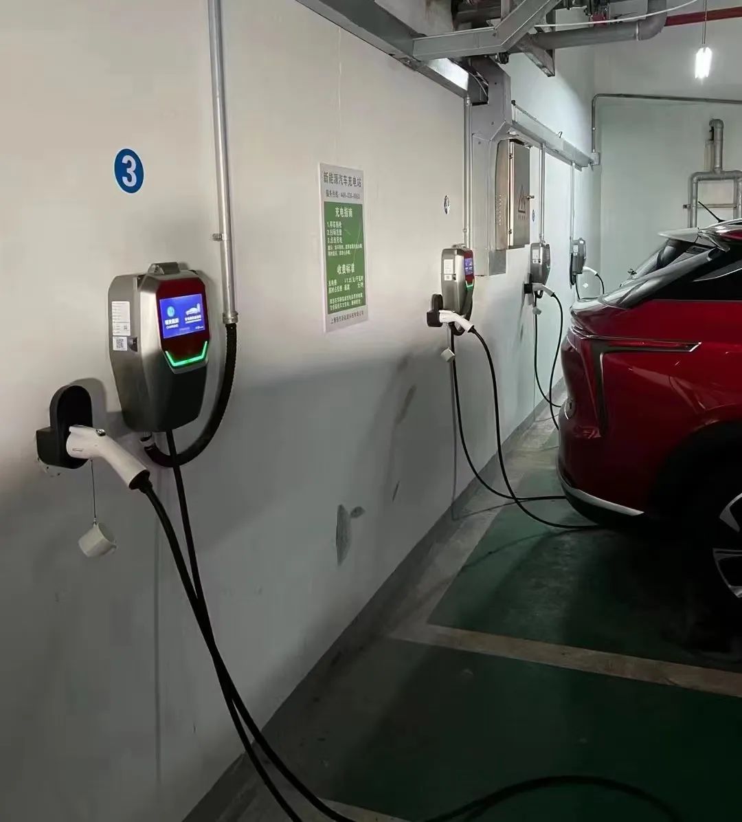 完工后的长桥七村停车库充电设施