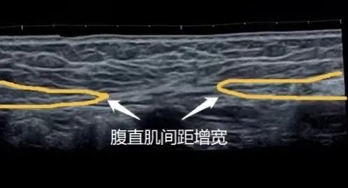 从图像来看,腹直肌分离的影像特征表现为前腹壁皮下脂肪层变薄,腹白线增宽,双侧腹直肌对称分离,双侧腹直肌前鞘变薄,朝两侧分离,腹直肌拉长、变薄,脐水平前腹壁局部前突等。