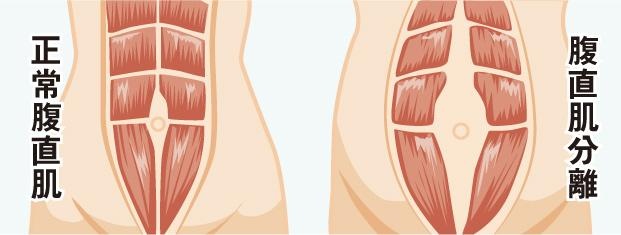 妊娠晚期或腹部肥胖者使腹壁扩张延伸,使腹白线被拉伸和变薄,使原本平行并列的两条腹直肌从腹白线处的位置分开,此种现象称之为腹直肌分离。