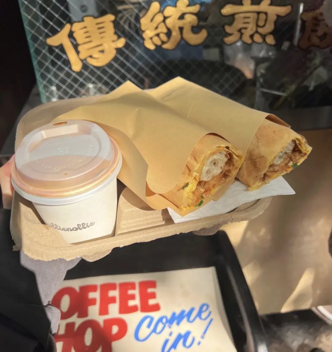 一副热气腾腾的油条脆饼煎饼果子,配上一杯香气沁人的咖啡,一度成为今年上海超人气的“中西结合”早餐。这一网红早餐组合来自今年静安区富民路开出的上海首家煎饼咖啡店ollie nollie store house,一经推出就出奇火爆,并从年初一直火到年尾。