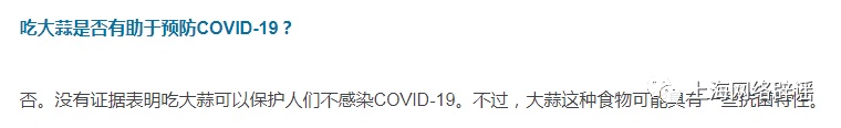 而且,世界卫生组织明确表示,没有证据证明生姜、大蒜能够预防新冠肺炎病毒。同样地,益生菌、辣椒等食品也不能让人们免于感染新冠肺炎病毒。