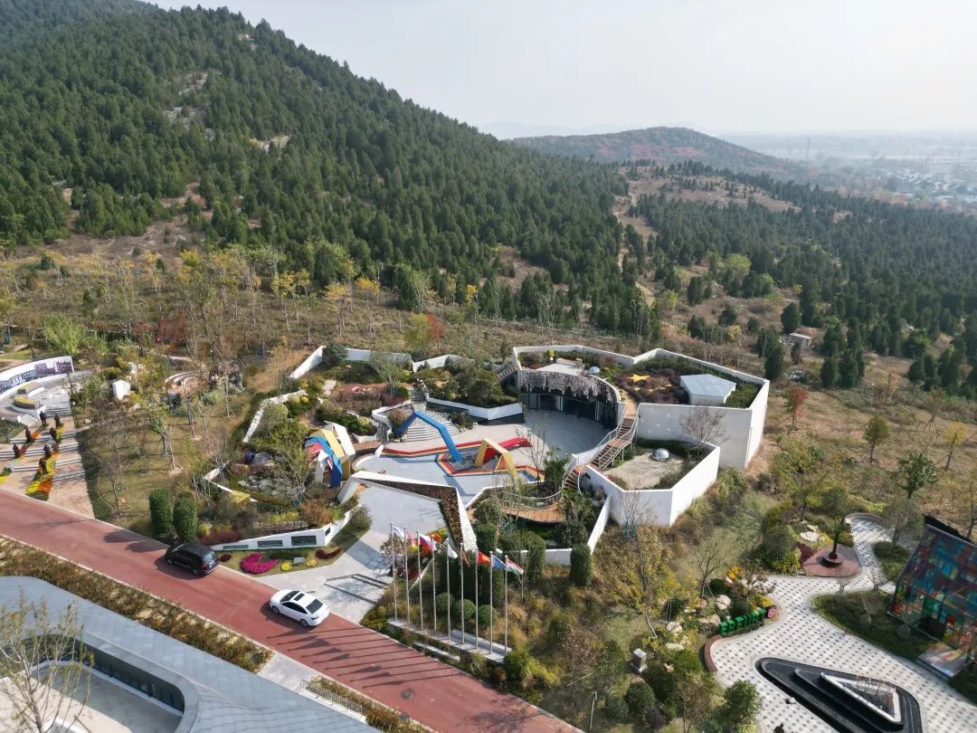 “徐州—上合友好园”采用现代风景园林有机生成设计方法,结合本土树种与核心共生植物,应用城市困难立地生态修复新技术,构建丰富的近自然植物群落。细节上,设计遵循序位法则,通过景深的层层递进,山、水、石、植物等要素的有序搭配,创造了不断变化的景观秩序;通过整体法则的运用,将连绵错落的台地家园,源于山形的折线围墙绿篱,灵动自由的迴游园路融为一体、浑然天成,尽情展现出均衡原则下富含节奏韵律的园林诗意与画境。上合园设计理念、空间意境,将凝聚于中国人骨子里的传统园林艺术内核进行了现代表达,借园林营建之法,呈人景相融之效,溯工程技术之本,彰显中华文化之自信,堪称可资借鉴于全世界的普适性现代化传播案例。