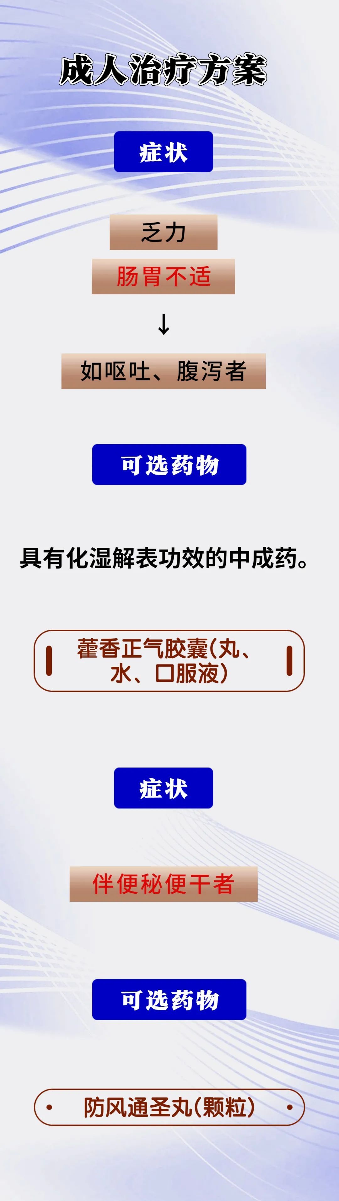 如有食欲不振、腹胀、便秘等症状可在医师指导下进行药食两用食品辅助治疗,如萝卜、山药、薏米、藿香、菊花、荷叶、丝瓜、冬瓜等。