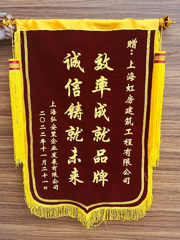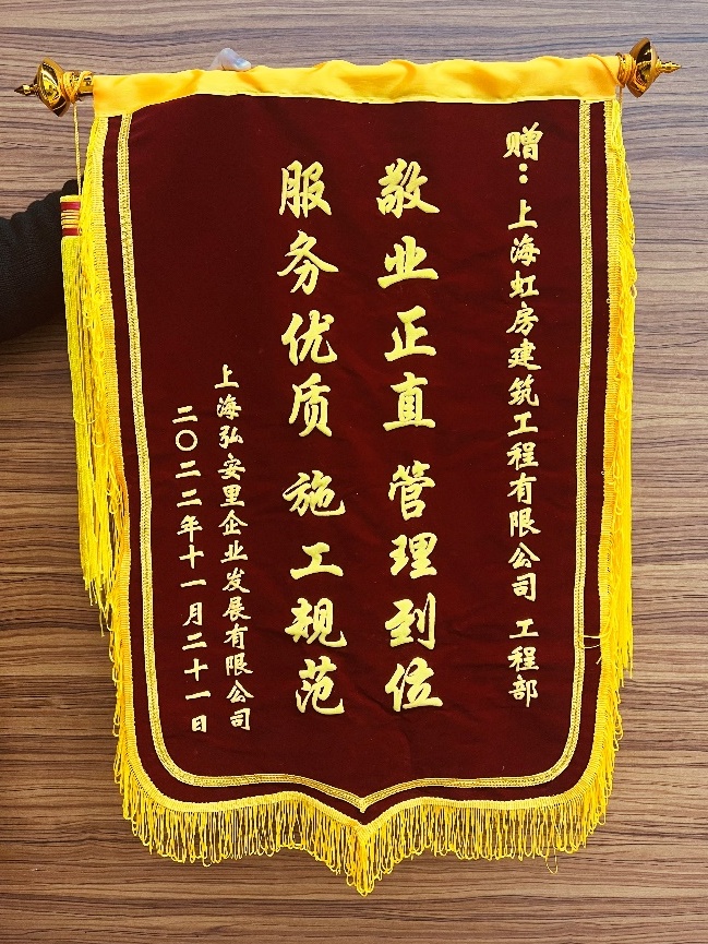 近日,虹房集团虹建公司及下属工程部分别收到来自虹口区四川北路17街坊地块项目建设方——上海弘安里企业发展有限公司的锦旗,这是对虹建公司及下属工程部在克服疫情影响条件下按时、保质、科学完成施工任务的褒奖。