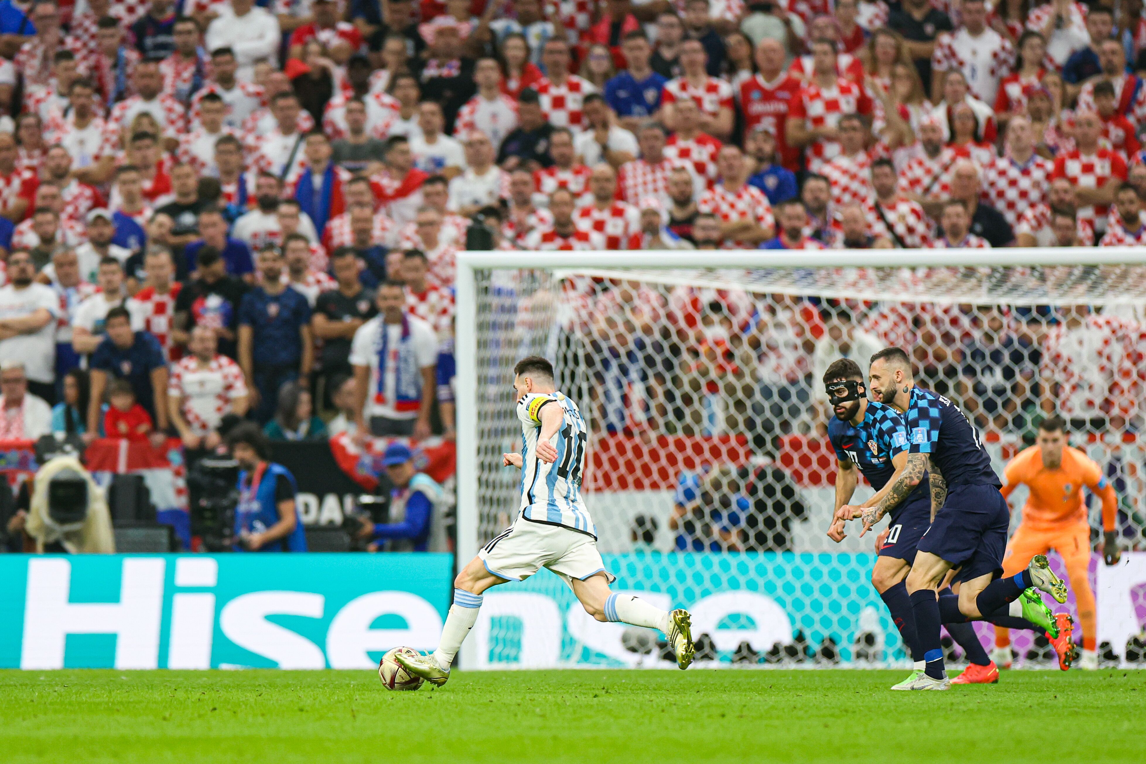 本场比赛负责盯防梅西的是2002年出生的格瓦迪奥尔。格瓦迪奥尔被视为是本届世界杯表现最好的中后卫,成为克罗地亚一路冲进四强的绝对保险“大闸”。“面具侠”世界杯出色表现也令其身价暴涨至亿欧,拜仁、皇马和曼联等豪门都对其伸出了橄榄枝。