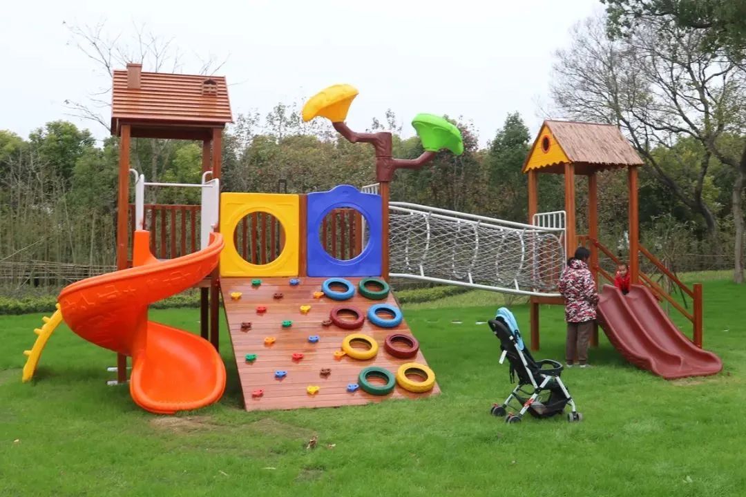 大草坪、攀爬架、滑滑梯……陆渡村蒋家宅附近新建了一处占地面积9.6亩的“口袋公园”,由竹园地改建而成。村民李女士趁着天气好,带孩子前来游玩,李女士说:“以前周末都是带娃去商场乐园、郊野公园,现在家门口就有游乐设施,方便多了。”