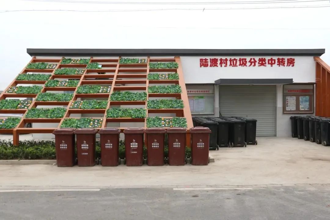 窑闸路上,雪白的墙面搭配着绿植映入眼帘。新建的陆渡村垃圾分类中转站实现了颜值、功能双提升。村委会还为每户村民都配备了干湿垃圾桶,并派专人定时定点上门收集垃圾,统一运至中转站,实现上门收运全覆盖,进一步推动农村生活垃圾收集、转运规范化、标准化,有效提升垃圾分类精准率。