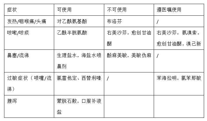 如果孕产妇感染了新冠,并出现发热、喉咙痛、流鼻涕等症状,居家观察时可使用以下药物↓↓↓