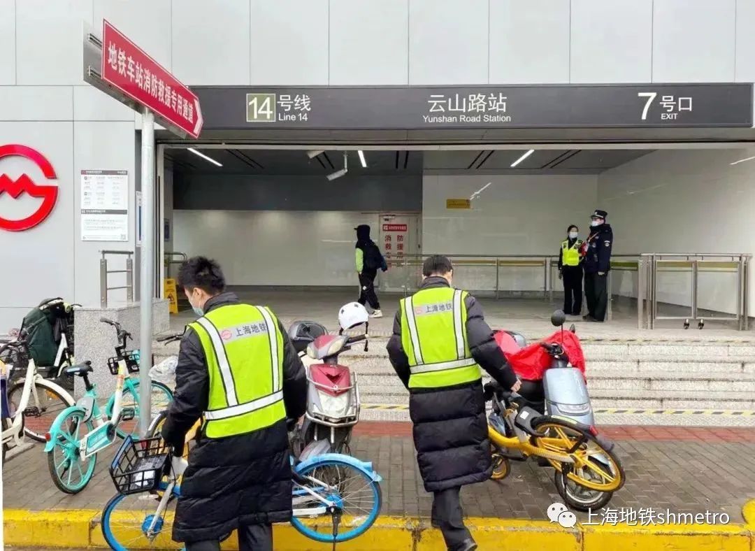 14号线云山路站周边住宅小区集中,随着线路客流日渐增长,云山路出入口外人行道非机动车乱停放的现象逐渐显露,特别是7号口处人行道较为狭窄,早高峰时段部分乘客贪图方便,随意停放造成人行道错乱拥挤,影响正常通行。