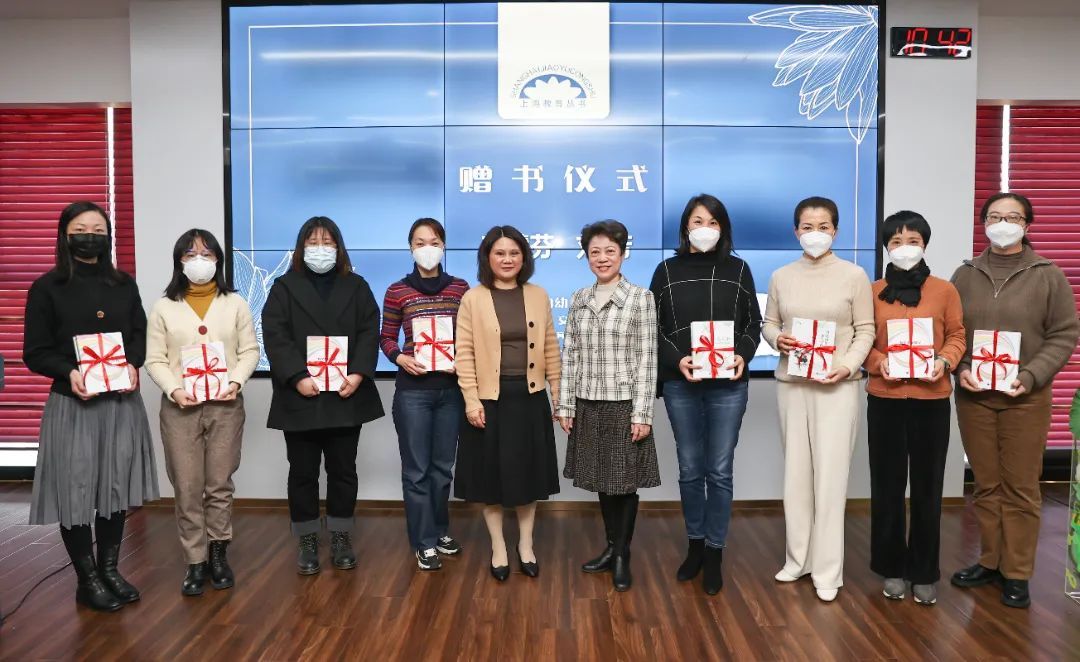 上海市托幼协会会长颜慧芬、上海教育出版社副社长刘芳向有关单位赠书