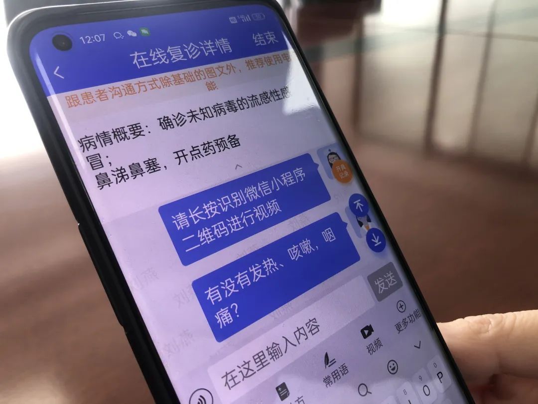 “挂号成功后,医生会和病人进行一对一的问诊,问清楚有没有咽喉痛、流涕、发烧等情况,强调过敏史和药物史,避免出现不良药物反应。”刘燕说,有些咨询者是代家属问诊配药的,要说清楚相关信息,以往病史报告也要通过图片上传。