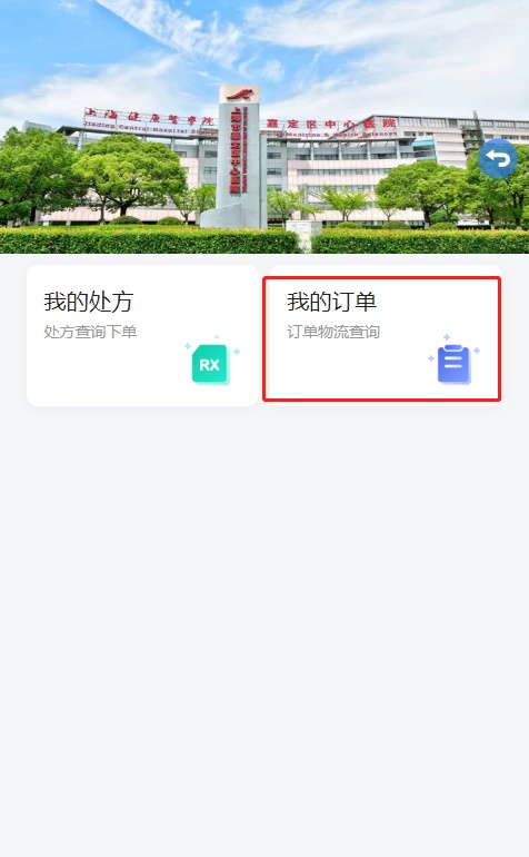 5.处方支付完成后查询物流:患者进入首页,点击“我的用药”—我的订单按钮进行处方物流的查询。