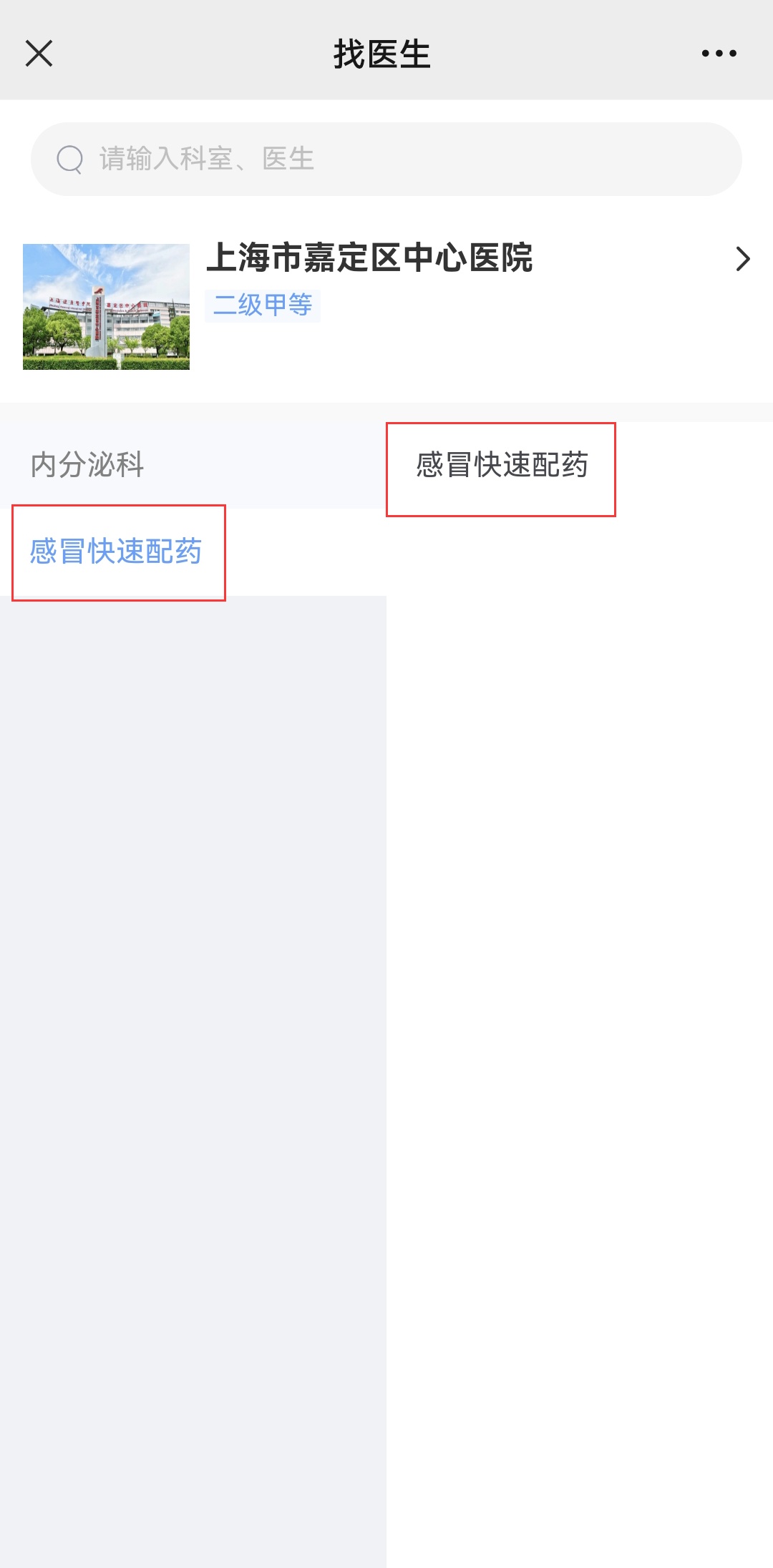 嘉定区中心医院互联网医院“感冒快速配药”门诊挂号就诊流程