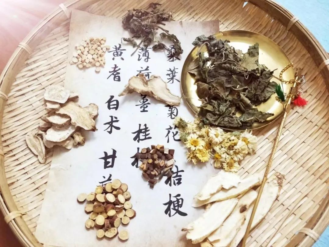 ☞参考方药:金银花、荆芥、黄芪、防风、广藿香、板蓝根、桔梗、芦根、炒白术、生甘草。