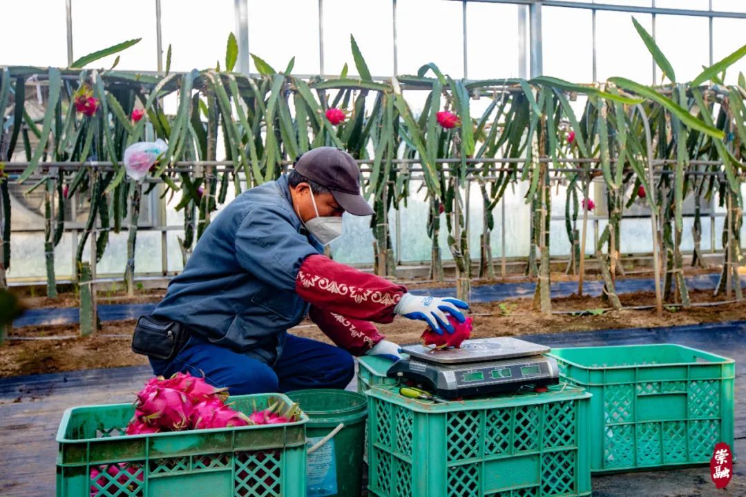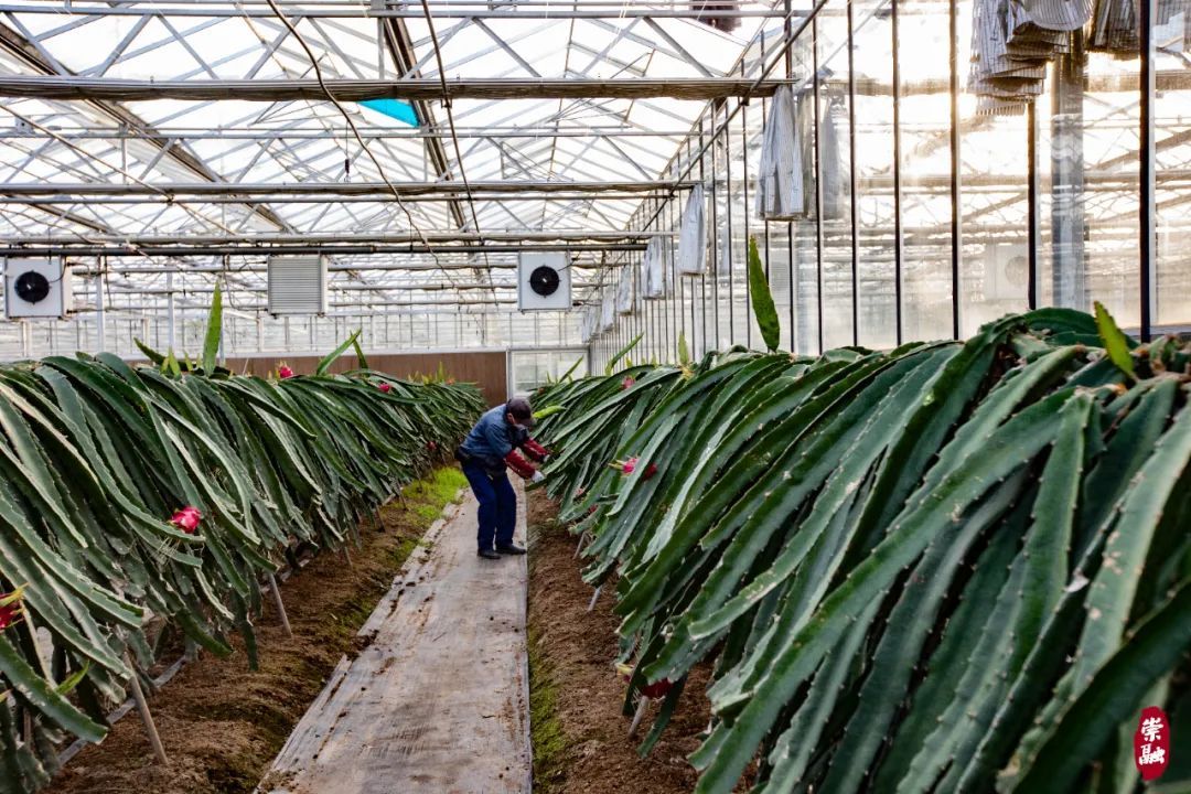 据悉,果园内种植的“软枝大红”自2015年起从广西农科院引进,在综合考量了其口感、长势、营养后选择了这一品种,一年可以结果2至3茬。今年,瑞华果园已销售火龙果5000余斤。“玻璃大棚内设有外遮阳、内保温装置以及降温、加热系统,可以很好地满足其生长条件。”李永说。