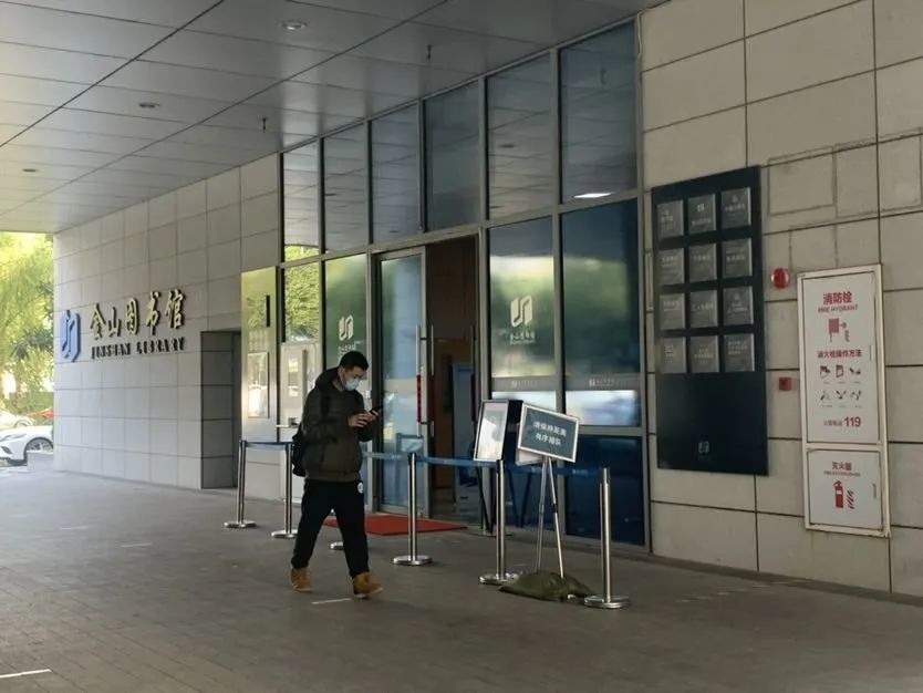 在金山区图书馆,市民只需要出示预约码,体温检测无异常后,便可进入。图书馆每两个小时会进行一次消杀,同时,工作人员依旧需要持48小时核酸阴性证明上岗。