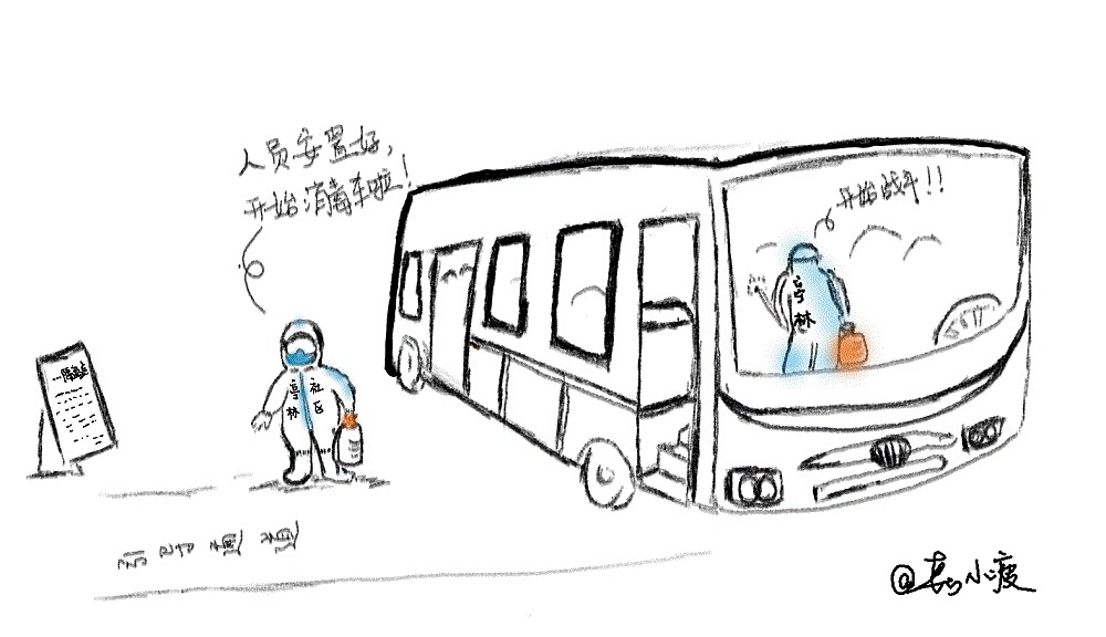 ▲完成人员接收后的大巴消毒
