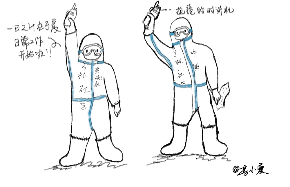我们的防护镜会被水汽遮挡得看不清任何东西,尤其是水银温度计上精准的读数,即使涂抹了防雾剂,长时间工作后,也会失效。我们每次从污染区下来,总会和大家笑称自己简直就像个“睁眼瞎”。