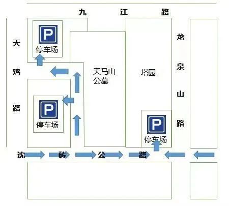 ▲天马山公墓及天马塔园停车场示意图