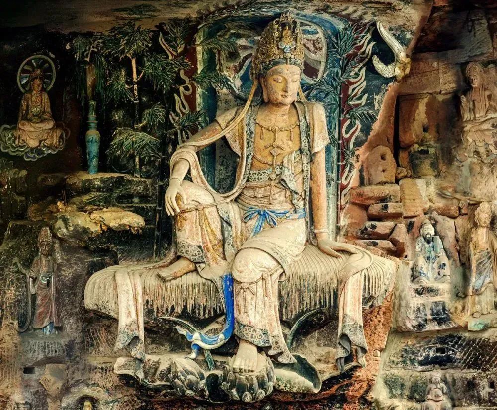 ↑四川安岳县毗卢洞北宋紫竹观音造像