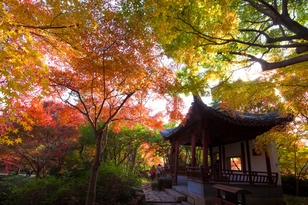 以槭属植物为特色的秋霞圃,园内植有鸡爪槭、羽毛槭、红枫三种槭属植物,其秋冬景色之美颇负盛名。