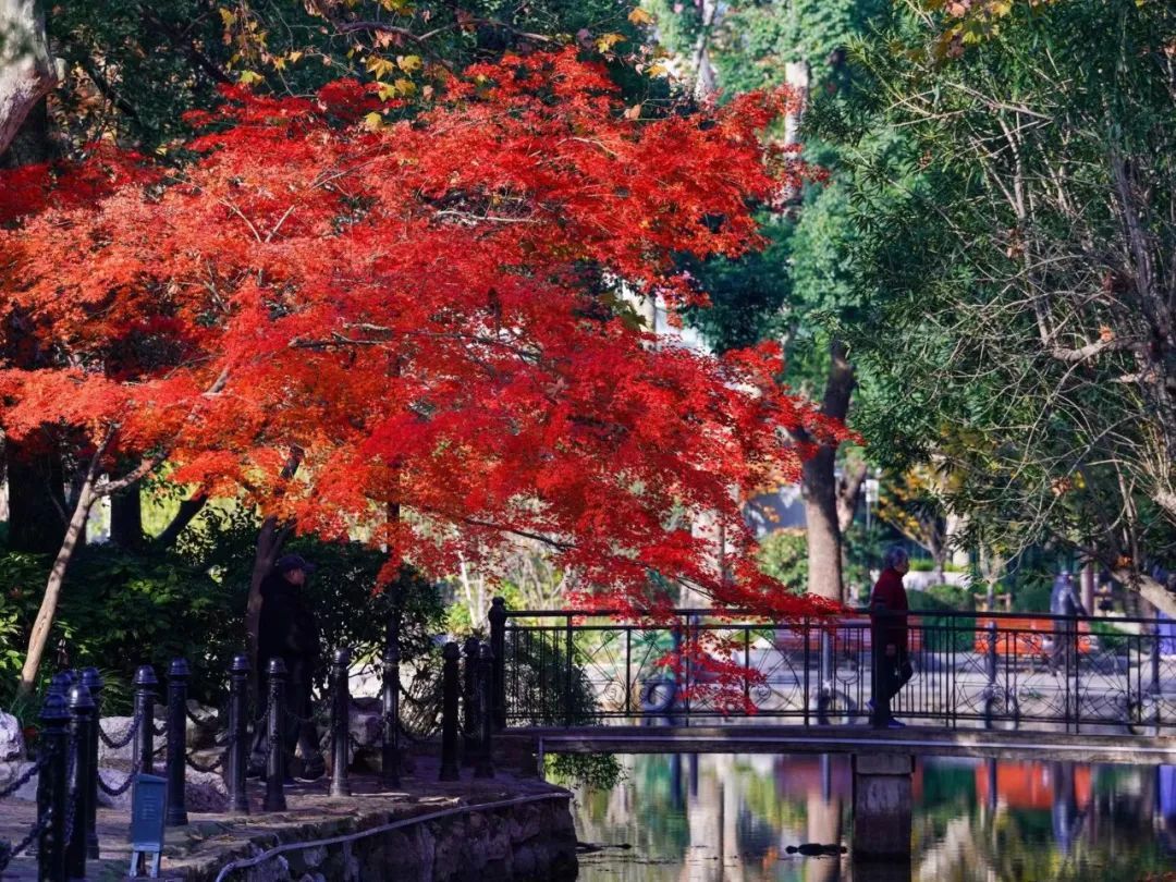 鲁迅公园的红与黄配比得刚刚好,目前已进入最佳观赏期,置身其中,如油画般令人美不胜收。