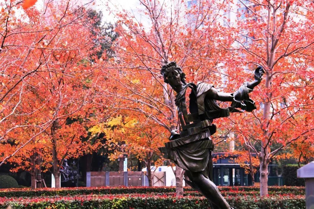 静安雕塑公园的红花槭,曾获“2021年度十大特色植物区”,现已经陆陆续续开始变色。待到树叶红成一片火海之时,映衬着独具特色的雕塑,美不胜收。