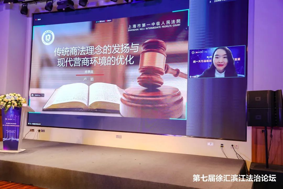 上海市第一中级人民法院商事庭审判长卢颖以“传统商法理念的发扬与现代营商环境的优化”为题做精彩分享。卢颖揭示出贸易与法律之间不可分割的紧密关系,并分析了富有交易便捷性与安全性的商法对于营商环境的重要作用,对二者如何贯通于商事审判活动提出了独到见解。她同时强调,商事审判已然与传统商事理念、营商环境理念融为一体,三者均应立足于本体,拥抱世界。