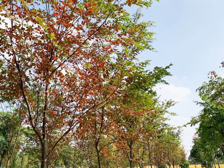 重固镇生态公益林四时皆有景,景景各不同。娜塔栎与榉树,在初冬时节显示出新的色彩,鲜红的树叶在阳光下熠熠生辉,真是树树皆美景。