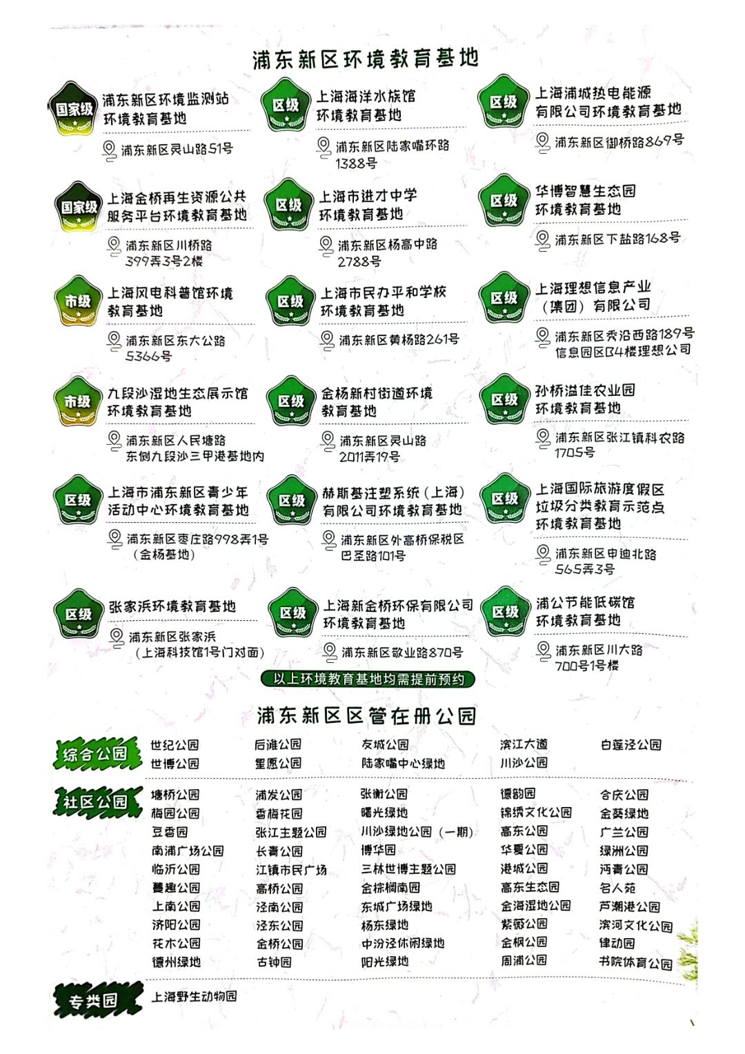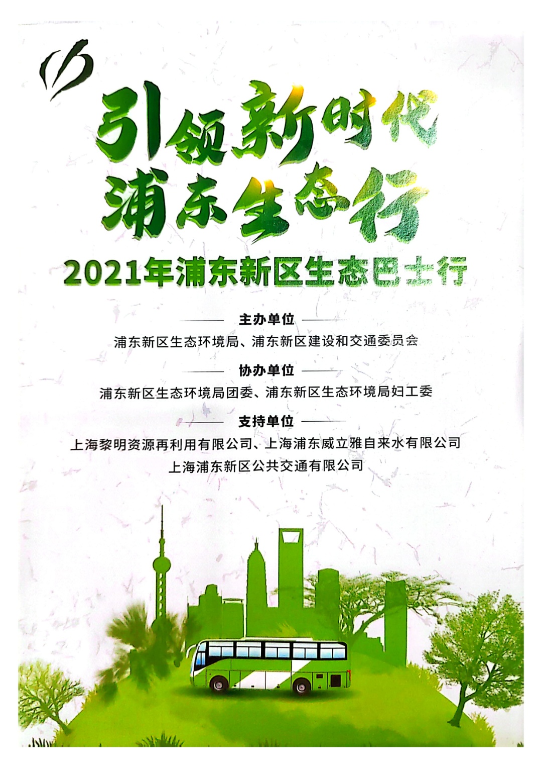 “浦东新区生态巴士行”面向社会,通过带领参与者绕行浦东新区多处生态空间,如:上海九段沙湿地生态展示馆等,打造移动的低碳/节能/绿色/生态/环保教育场景沉浸式体验,使其更深入地走进令人向往的生态之城,全面推动生物多样性保护科普宣传。2021年,开展“引领新时代 浦东生态行——2021年浦东新区生态巴士行”活动,广受好评。